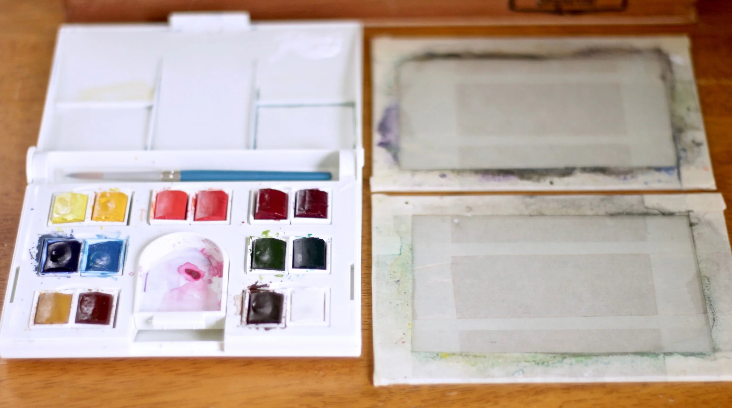Left: My Winsor & Newton travel set (Cotman, not Professional) that I have never taken outside. I also don't think I've ever used the brush that came with it.